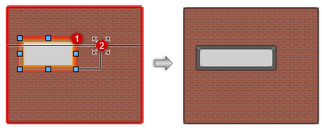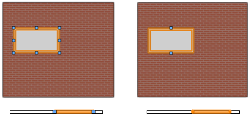 Handles indicate which dimensions are set by instance and can be changed. In Top/Plan view, only the width can be changed with the Selection tool.