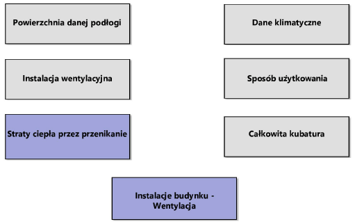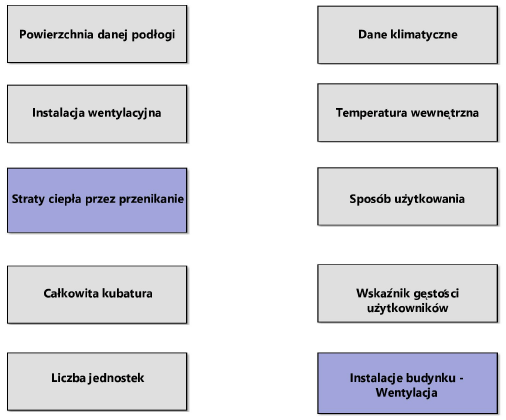 Parametr w ramce z niebieskim wypełnieniem posiada własne zależności z innymi parametrami.