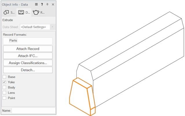 Click the Data tab on the Object Info palette. Click Attach Record to open the Resource Selector, and double-click the Parts record to attach it.