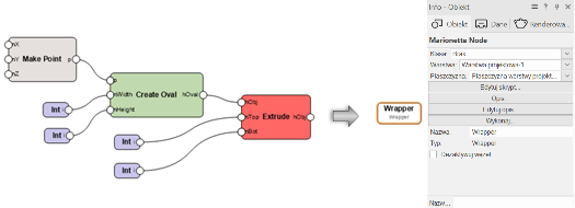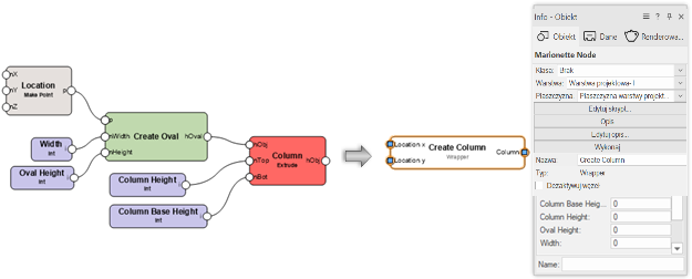 Aby wykonać skrypt, kliknij węzeł w sieci prawym przyciskiem myszy i zaznacz odpowiednie polecenie. Możesz też kliknąć przycisk Wykonaj w palecie Info.