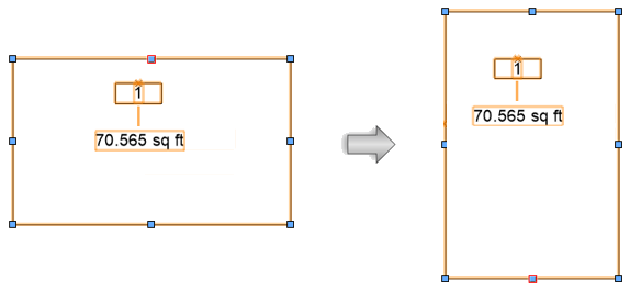 Za pomocą tego trybu zmienisz kształt prostokąta, prostokątnej polilinii/wieloboku lub prostokątnego obiektu parametrycznego na bazie ścieżki, takiego jak strefa, płyta czy powierzchnia roślinna, poprzez przesunięcie krawędzi obiektu, z zachowaniem jego powierzchni.