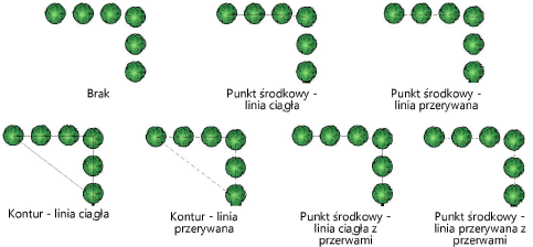 Wskaż typ polilinii w przypadku układu wieloroślinnego. Zmiana widoku konturu i punktu środkowego ma wpływ na kształt układu.