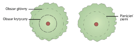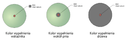 System korzeniowy (SK) odnosi się do kolistego obszaru wokół podstawy drzewa, wymaganego ze względu na stabilność drzewa. Wygląd wskaźnika SK można ustawić w zakładce Atrybuty. |