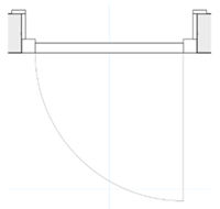 Okno lub drzwi wewnętrzne wyświetlone w widoku z przodu, czyli widziane wzdłuż lewego lica ściany. Ten podgląd nie jest interaktywny. W tej kategorii nie można używać kontrolek Paska trybów widocznych nad podglądem. Aby aktywować te kontrolki, przejdź do kategorii Ramy i skrzydła. |