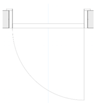 Drzwi wewnętrzne z opaskami w ościeży oraz na licu (grubość ościeżnicy nie pokrywa się z grubością ściany) Opaska na licu zwykle nie będzie widoczna na rysunku, ponieważ jest „przerwana” przez ościeżnicę drzwi.