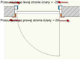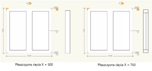 Zdefiniuj położenie płaszczyzny cięcia względem osi X. Ten parametr ma wpływ na widok okna lub drzwi w przekrojach pionowych.