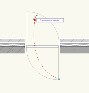 Kliknij punkt kontrolny widoczny na wyświetlanym kierunku otwierania i przeciągnij go w wybranym kierunku. Operację tę można wykonać w dowolnym kierunku: zarówno w lewo/prawo, jak i do wewnątrz/na zewnątrz.