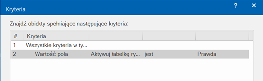 Zostanie otwarte okno „Menedżer kryteriów tabelek rysunkowych”. W tabeli są wymienione aktualne kryteria według nazwy i formuły.