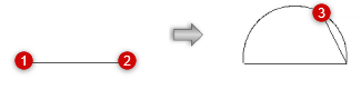 Zaznacz ten tryb, aby utworzyć łuk przy użyciu dwóch punktów wyznaczających średnicę oraz kolejnego punktu na łuku. |