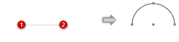 Bez wciśniętego klawisza Shift kąt linii między punktami końcowymi (kliknięciami 1 i 2) będzie nieograniczony, a cięciwa definiująca wysokość łuku będzie dowolną linią wychodzącą z drugiego zakończenia