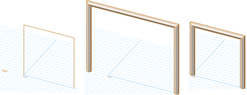 Zaznaczenie opcji Zablokuj płaszczyznę profilu (u góry) ogranicza ścieżkę do osi, a jej odznaczenie (u dołu) umożliwia skręcanie wzdłuż ścieżki |