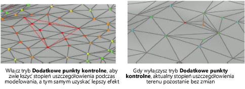 W trybie Przy użyciu promienia włącz funkcję Dodatkowe punkty kontrolne, aby dodać dodatkowe punkty kontrolne oraz krawędzie. Następnie wprowadź Maks. odległość.