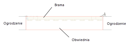 W przypadku trybu Brama ten tryb pomocniczy przesuwa bramy wzdłuż linii ogrodzenia. Nie można przesunąć bramy, ani słupka poza słupek narożny. |