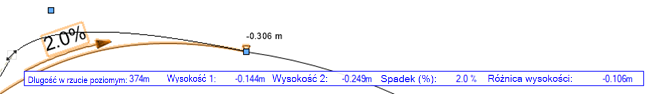 Po wstawieniu nachylenia można zmienić jego wysokość, wystarczy zmodyfikować wysokość zaznaczonego punktu nachylenia. Ewentualnie można zmienić wysokość wybranych lub wszystkich wskaźników jednocześnie.