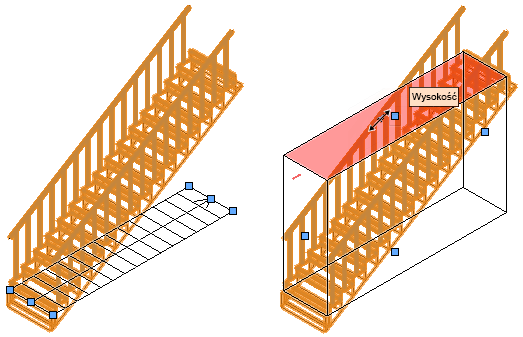Na schodach wyświetlone zostaną punkty kontrolne, informujące o tym, które wymiary nie są zablokowane i mogą być edytowane.