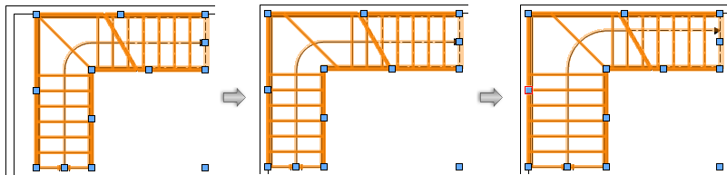 Jeśli w wyniku przesunięcia punktu kontrolnego powstałyby niewymiarowe schody, podgląd zatrzyma się w ostatnim miejscu, w którym wymiary schodów były prawidłowe, a schody zostaną przekształcone tak, aby dopasowały się do podglądu.
