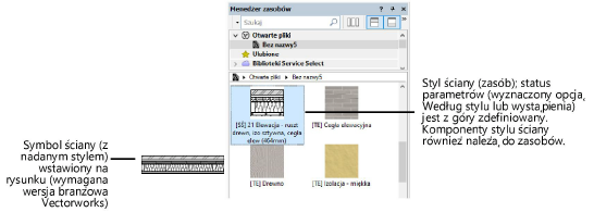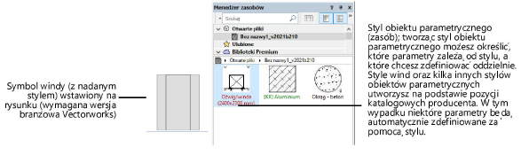 W przypadku niektórych obiektów parametrycznych ich style są definiowane przy użyciu pozycji katalogowych udostępnianych przez producenta (zob. Zagadnienie: Style obiektów parametrycznych i produkty z katalogów).