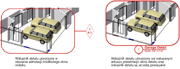 W razie potrzeby możesz wstawić ręcznie dodatkowe wskaźniki detalu w innych warstwach projektowych lub w obszarze adnotacji innych okien widoku. Zob. Wystąpienia wskaźników detalu.