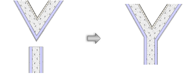 W procesie łączenia ścian za pomocą narzędzia Złącz ściany, gdy opcja Automatyczne łączenie ścian w Preferencjach Vectorworks jest włączona, komponenty są zazwyczaj automatycznie łączone w sposób prawidłowy. Ta operacja wymaga zdefiniowania komponentu głównego. (Zob. Łączenie ścian.)