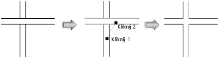 Połączenie krzyżowe pozwala na połączenie dwóch segmentów ściany w punkcie ich przecięcia. Aby móc użyć tego trybu, należy upewnić się, że segmenty faktycznie przecinają się, ponieważ długości ścian nie są w tym trybie edytowane.
